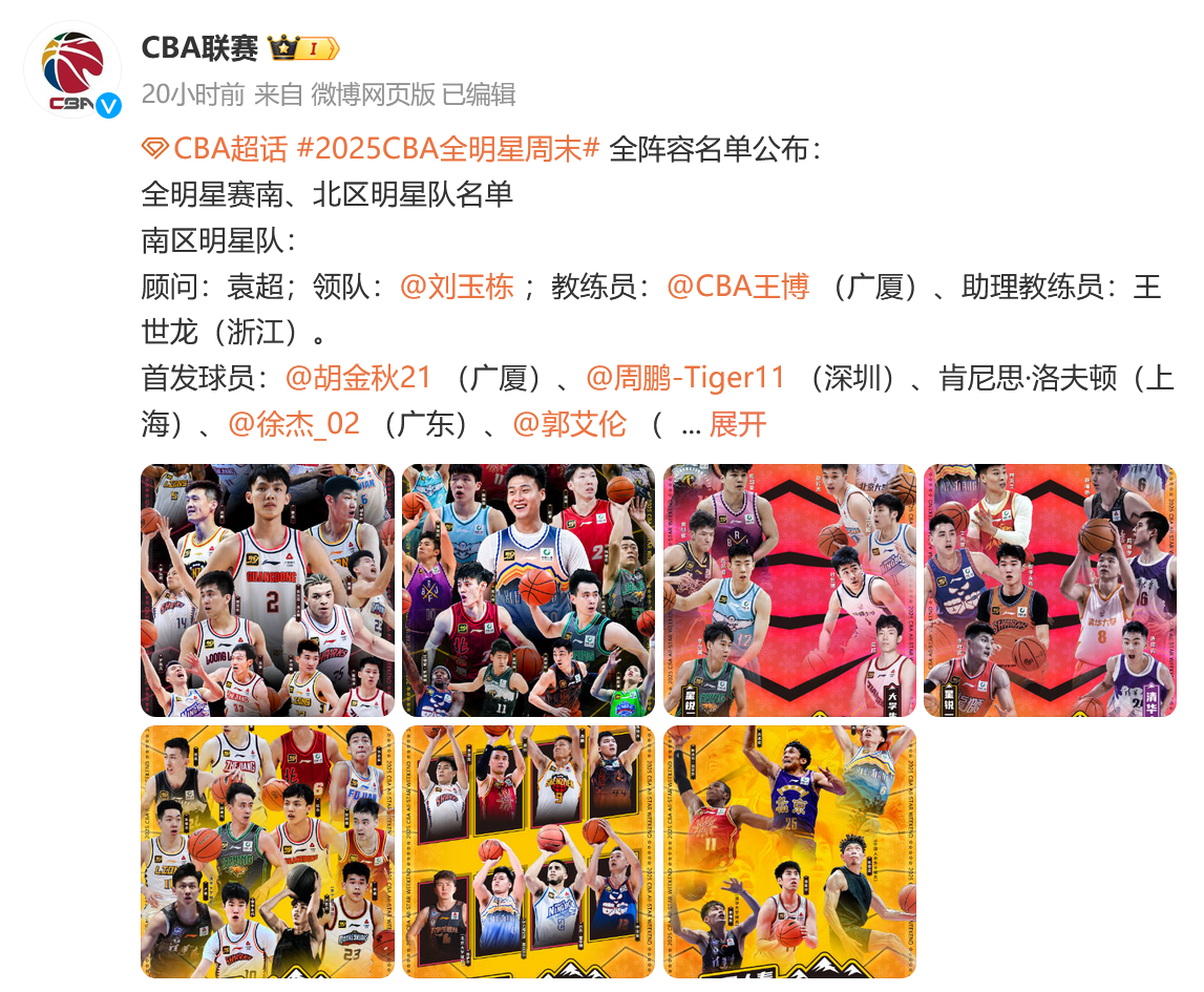 全明星周末2025CBA全明星阵容名单公布。