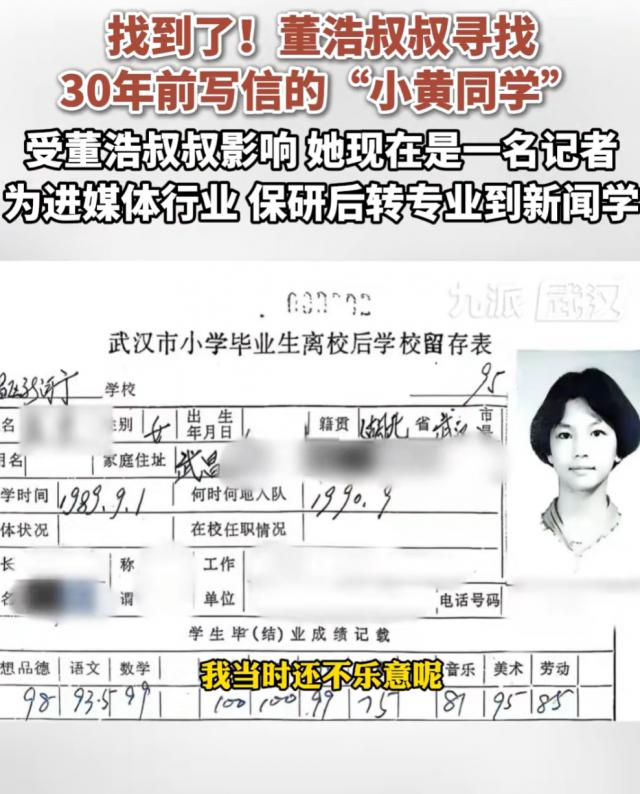 最近,董浩叔叔还在找一个来自武汉新河街小学六(1)班。小黄同学。