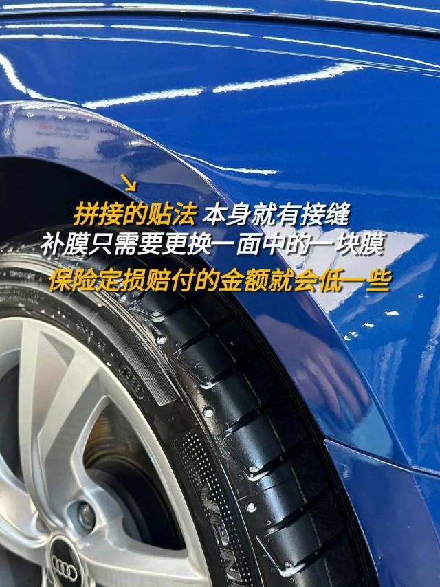 如果是拼接贴法,上半部分蹭到了,只需更换上半部分的车衣,定损赔偿金额就会较低。