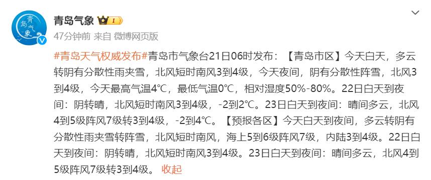 今日全市渗透雨夹雪转阵雪!青岛最新预报→