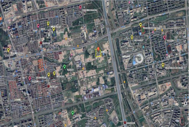 此案周边有 956 路、闵行 41 公交线路,轨道交通有15号线紫竹高新区站。