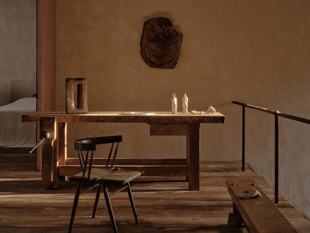 回收木门,随意地放在地上,是一张非常完美的茶几;徒步时发现的枯木,拼接成新的桌子,餐桌…
