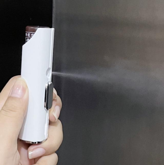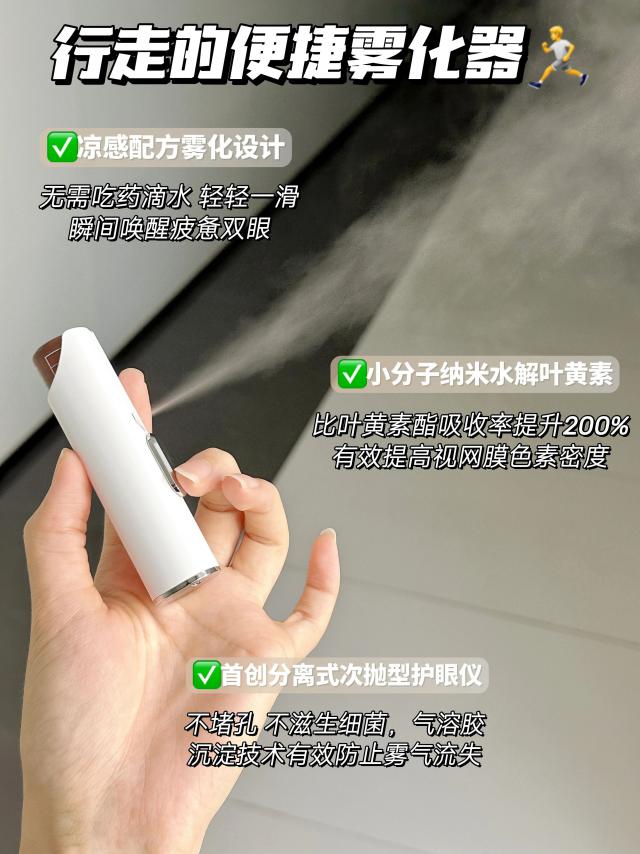 而且雾精度很好,纳米雾化头平行对着眼球,喷洒时只覆盖眼睛周围。(可以离眼睛很远 5-10CM 平行喷射)