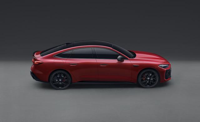 就外观而言,无框车门 大溜背 掀背尾门等待设计风格依然保留,其正面接近奥迪。 RS5 运动风格设计采用更扁平的大尺寸六边形格栅,前包围采用贯穿式进风口,两侧有大开口的熏黑导风槽,可选择各自安装激光雷达。格子两侧配有矩阵 LED 大灯,数显式 LED 日间行车灯可以呈现出各种不同的灯光造型,中间悬挂着可以发光的四环车标,传达出的科幻感也相当强烈。