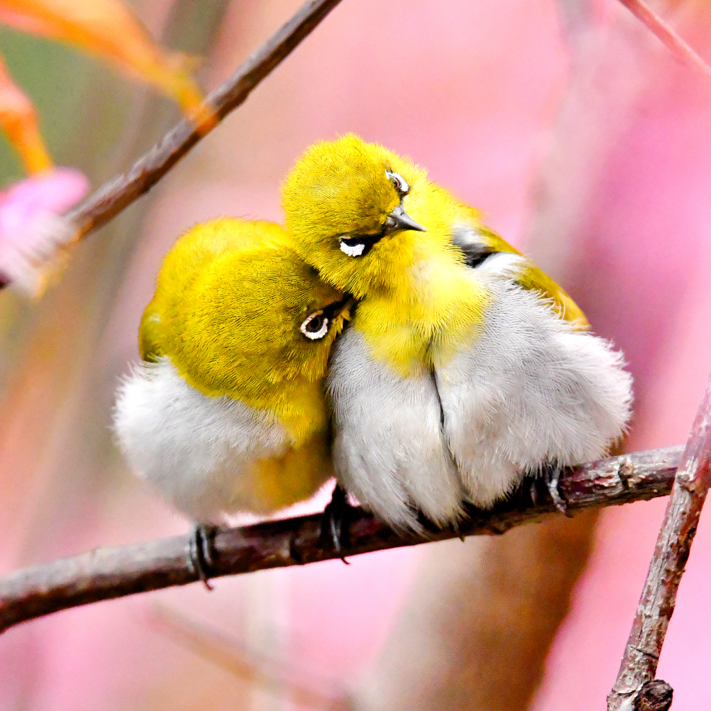 2025年2月19日,一对聪明的绣眼鸟在贵阳市水东路南明河畔的冬樱树枝上嬉戏。秦刚/视觉中国 图