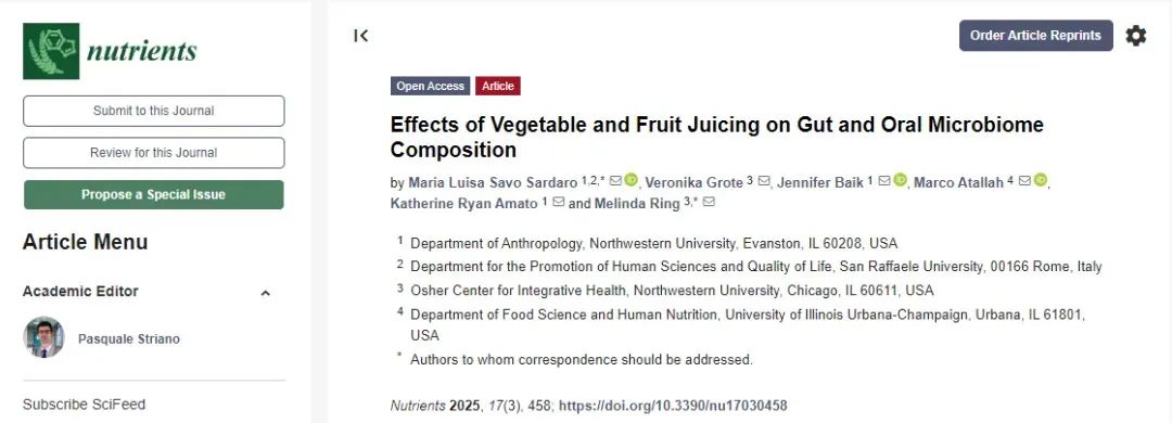 △《营养学》杂志上发表的西北大学研究人员的文章