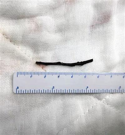 我听说过不小心吞下了枣核、鱼刺、骨头,甚至是假牙和牙签,但市民庞先生在喝茶时不小心吞下了一根树枝。直到躺在手术台上,他才知道自己吃了什么。南开医院医生连夜手术后,取出了这根树枝,长度居然达到了。 5 厘米。