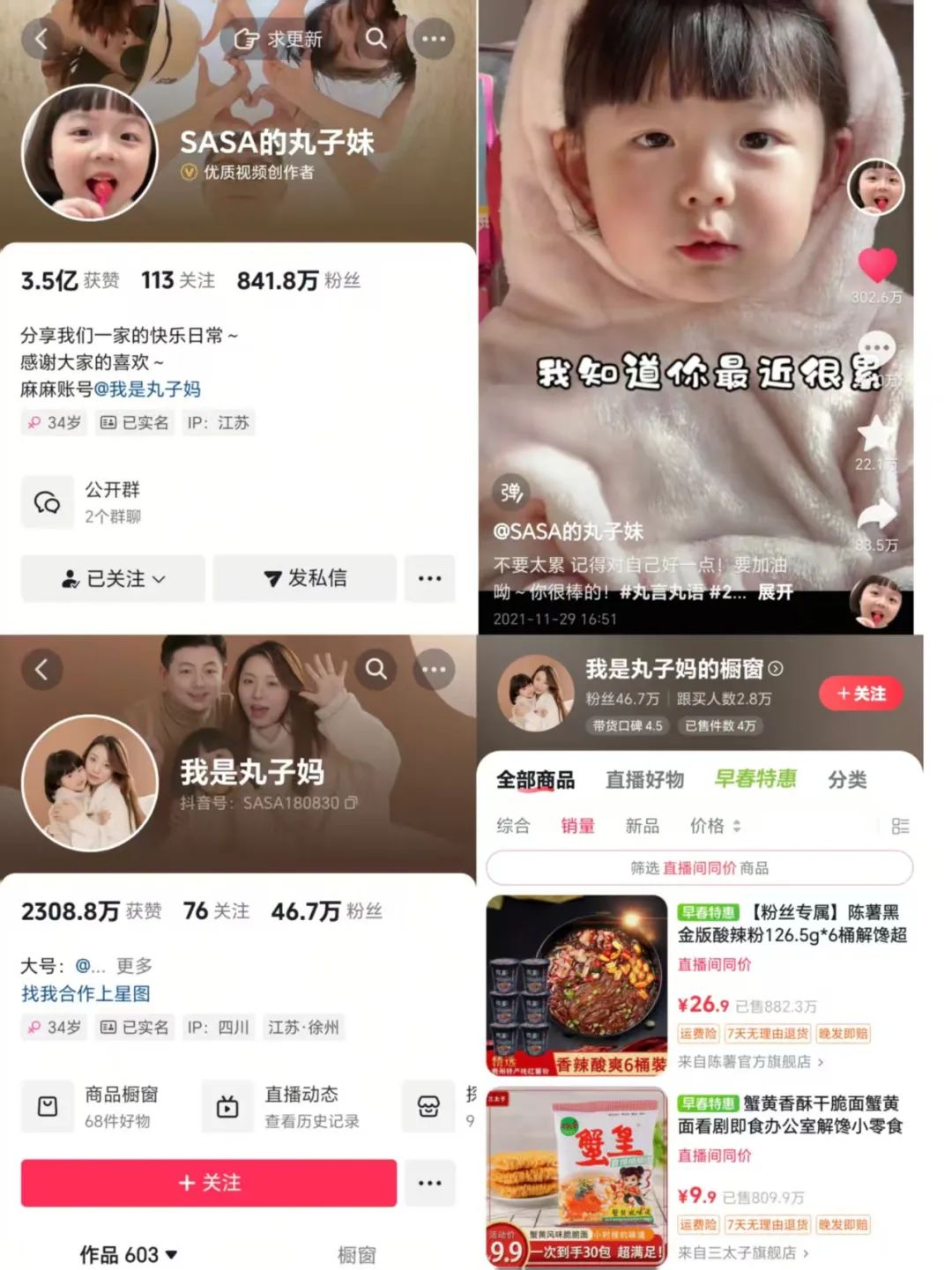 与此同时,在萌娃走红之后,面对巨大的流量和大量涌入寻找合作的品牌商家,许多萌娃父母会选择站出来打造个人IP,进行直播销售等多元化商业化变现。