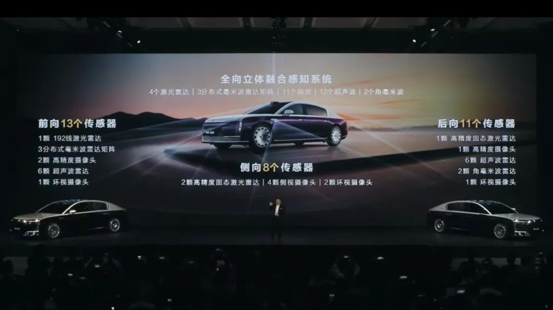 在硬件方面,这种描述确实没有问题:尊界S800将配备多达4个激光雷达,整车配备前向13个、侧向8个、后向11个传感器,形成全向立体感知系统。配备了这么多感知设备,其能力已经远远超出了目前L2级智能驾驶的需求,为更高级的智能驾驶留下了足够的硬件冗余。