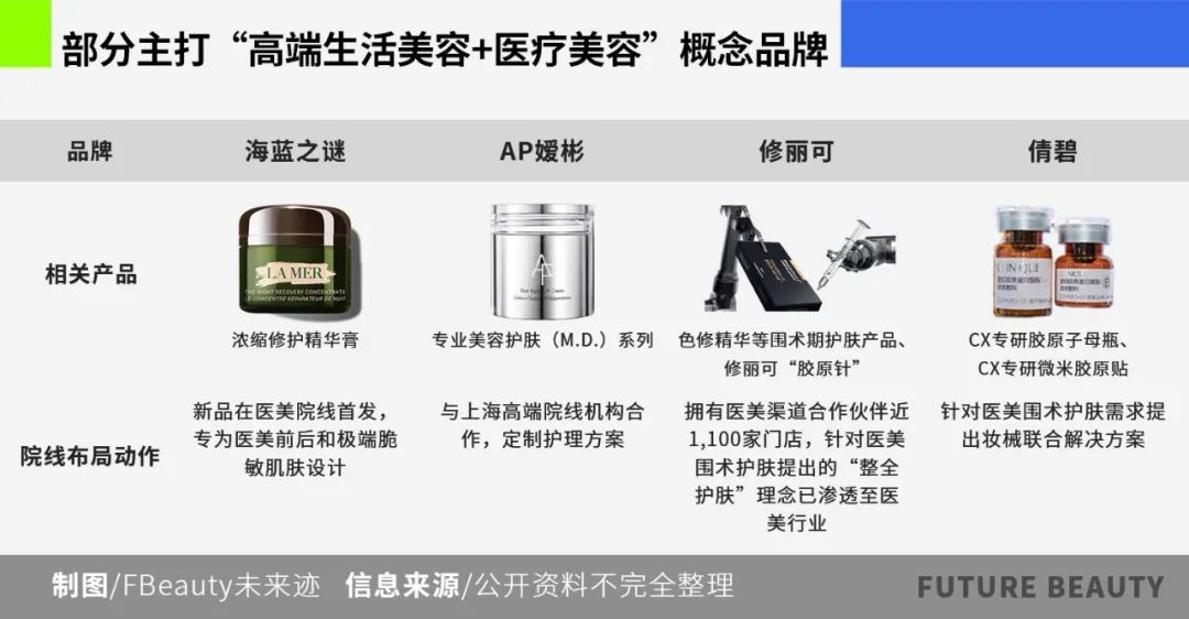当然,欧莱雅集团旗下的修丽可是布局医疗美容渠道最早、最深入的高端品牌。它不仅拥有近1100家门店的医疗美容渠道合作伙伴,还拥有色修精华等经典护肤品。医疗美容护肤提出的“完整护肤”理念已经渗透到美容行业,去年直接进入美容行业,推出了三类医疗器械产品修丽可“胶原针”。