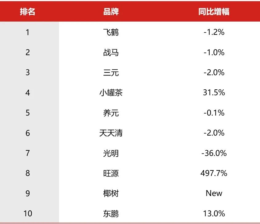 饮料行业 广播广告杂志的费用同比减少17.4%,与去年相比,跌幅收窄6%。 这种变化主要是由于头部品类婴幼儿奶粉广告营销的减少。11.1%的影响。 然而,特殊用途饮料、茶叶、植物蛋白饮料等多个品类在广播渠道的广告中有所上升,活跃的品牌包括鹤、马、三元、小壶茶、养元等。
