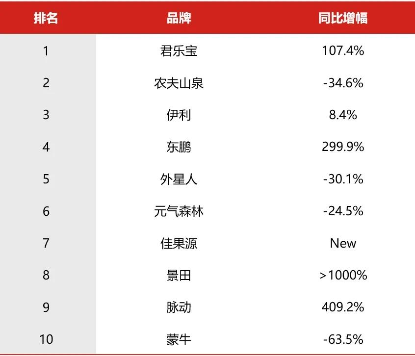 饮料行业主要是在机场和电梯海报上投放广告,费用同比分别上涨57.5%和6.6%。这个行业的投放量很大蒸馏水/矿泉水,婴幼儿奶粉,汽水类别各自减少投资10.1%、42.2%和27.6%,这是决定饮料行业整体户外广告同比减少2.6%的主要原因。业内特殊用途饮料、茶饮料、植物蛋白饮料等品类增加了户外渠道的宣传。活跃的品牌包括君乐宝、伊利、董鹏、活力森林、佳果源等。