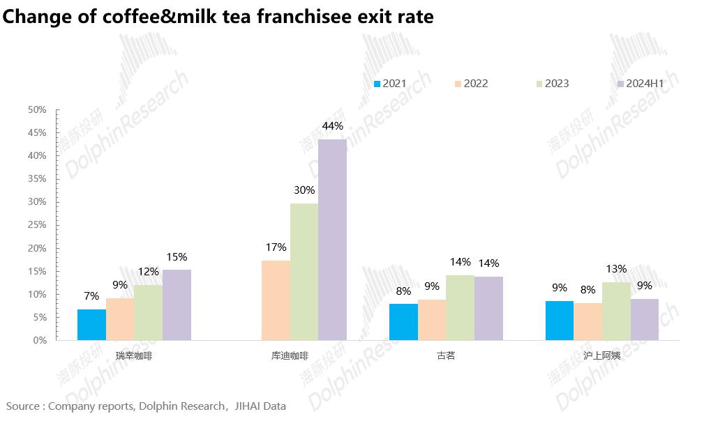 但是,尽管如此,海豚君认为,瑞幸和库迪之间的差距正在逐渐扩大,无论是供应链效率、品牌实力还是加盟商忠诚度。,当瑞幸跳出价格战,杯价逐渐修复时,库迪仍然只能依靠9.9店铺模式的“强制”扩张,以牺牲品牌价值为代价(库迪店铺模式在12月暂停投资,改为便利店模式)。因此,即使库迪和瑞幸的“红蓝之争”短期内不会结束,海豚君也不会担心库迪的威胁。