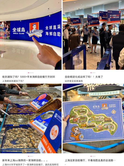 全球岛海鲜自助直接采购降低了中间商的涨价,大规模采购稀释了运输成本,SKU丰富度形成了“高性价比” 稀缺性“双重吸引”。