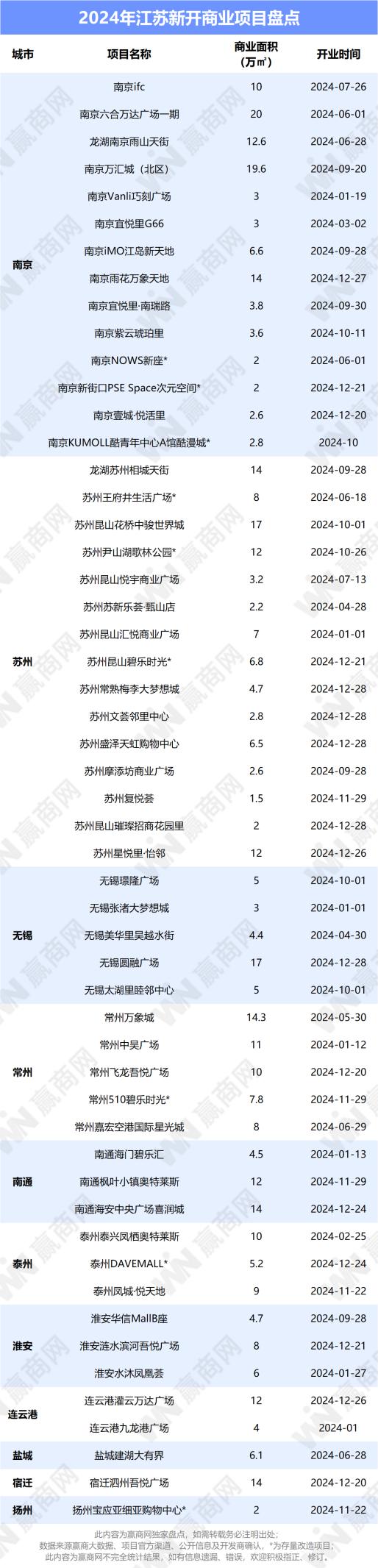 根据赢商网的统计,2024年,江苏以一省之力贡献了53个新mall,商业规模达到404.9万。㎡,仍然处于全国增量市场的前列。
