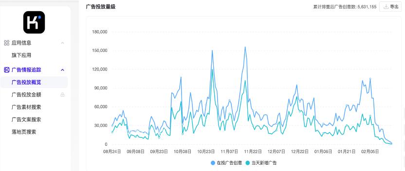 AppGrowing数据显示,最近豆包App、Kimi等广告营销量大幅下降,最低水平几乎降至近180天。