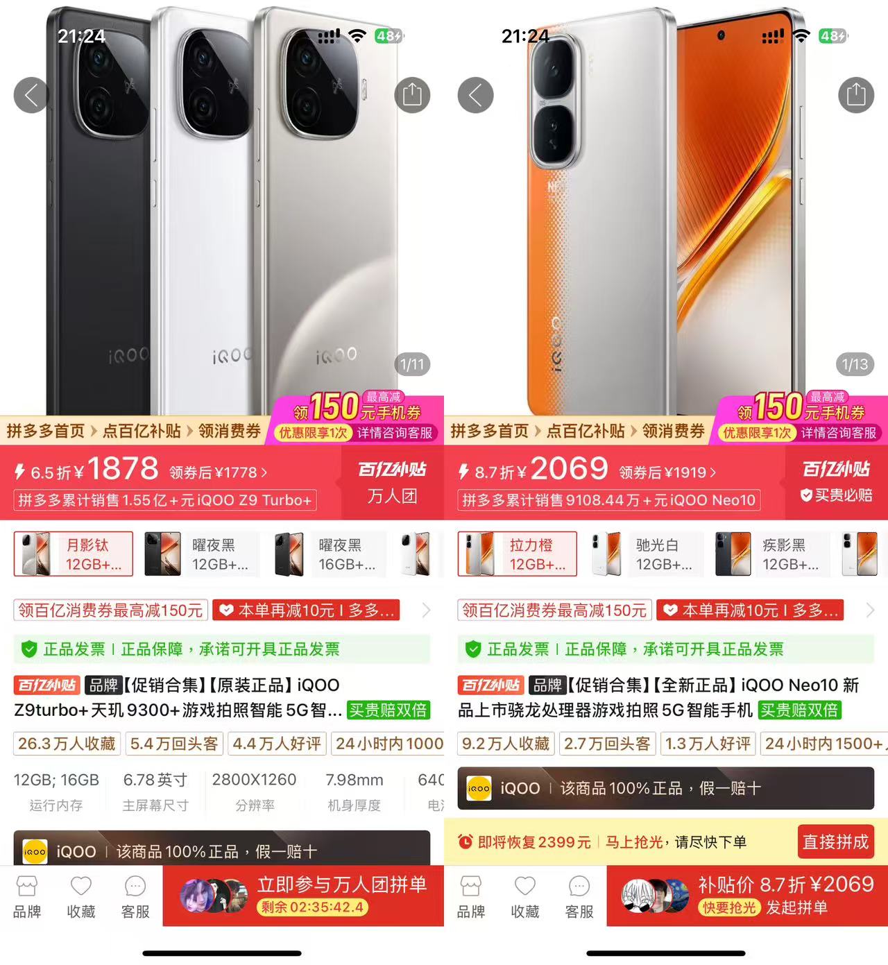 尤其是在百亿补贴和国家补贴的多重优惠政策下,搭载老旗舰芯片的中端优势更为明显。搭载骁龙8 Gen 3的iQOO Neo 现在只要2069元起,配备天玑9400元。 的iQOO Z9 Turbo也只需要1878元。骁龙8s在这些旧旗舰芯片的冲击下 Elite的新机器似乎需要抛出更多的折扣,或者其它更具吸引力的特性。