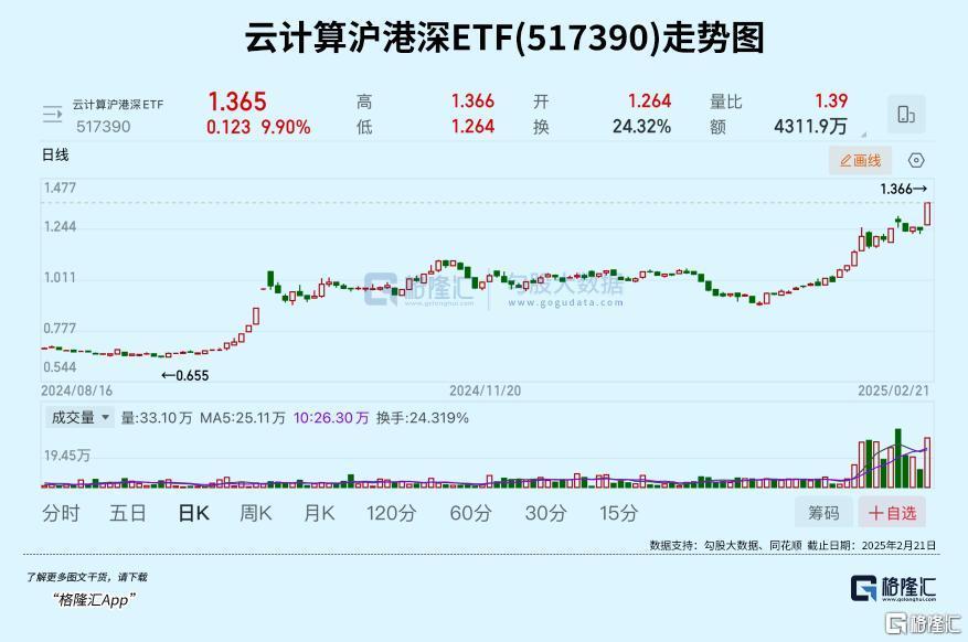 跟踪上海、深圳、香港云计算概念股的云计算,沪港深指数大幅上涨7.18%,在主要指数中涨幅居全市第二。跟踪这个指数沪港深ETF(517390)云计算溢价也大幅上涨,表现出亮眼。