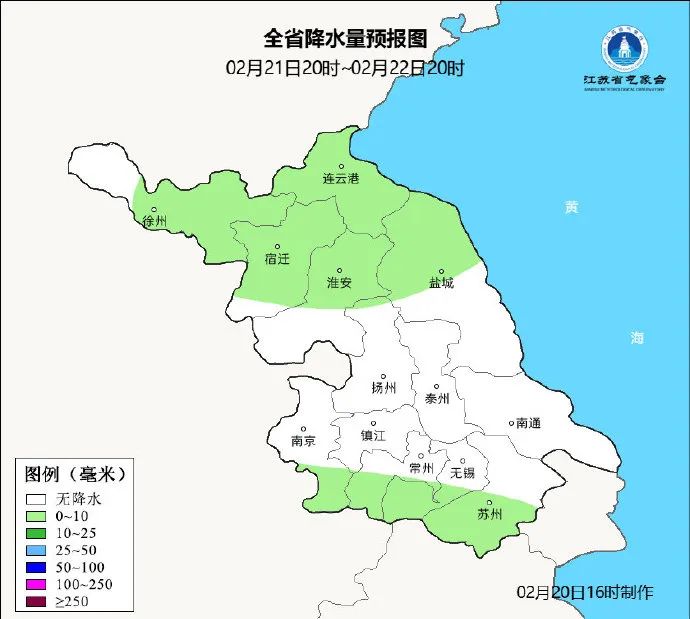 2月21日20:00至2月22日20:00,苏南南部多云多云有小雨,淮北沿淮多云有小雨或小雨夹雪,其他地区多云到阴。最高气温:淮北北部5~6℃,其他地区9℃~10℃;最低温度:江淮之间-1℃左右,其他地区1℃左右,~2℃。全省东风4级左右。