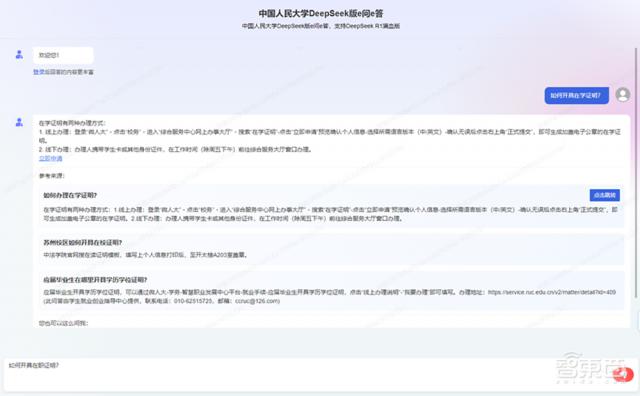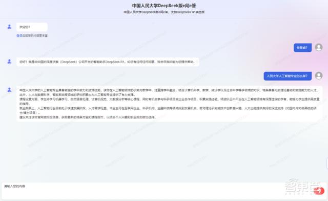 智东西 2 月 21 据日报报道,中国人民大学本周刚刚开学。 e 问 e 接入了服务平台满血版 DeepSeek-R1升级为中国人民大学(671B) DeepSeek 版 e 问 e 回答。学院部署的满血版,将充分发挥其优势,支持校园办公系统、科研项目协助、学术资源分析等待多领域应用。