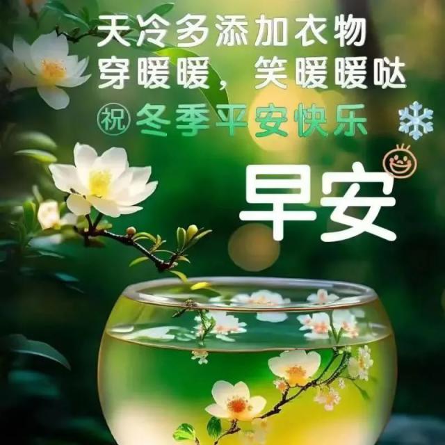 虽然冬风很厉害,但愿你的心永远温暖。在这个冬天,愿你收获满满的幸福和快乐,每天沐浴在阳光下。天气变冷了,别忘了加衣服保暖,珍惜朋友的友谊,快乐的时刻陪伴你。早上好 ~!