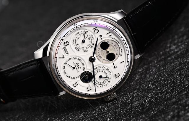 去年,万国推出了这款葡萄牙永恒历手表。虽然表面上没有其他天文表那么得瑟,但它已经清楚地掌握了行星几千年的运行规律,被公认为扮猪吃虎。除了圆顶表镜组合的透明表盘和沙漠刻度环的未来主义外观外,这个永恒历还有两个非凡而复杂的功能,即“永恒”日历和最准确的机械月相。它的万年历部分,只有八个部分创建的全新模块才能准确计算到至少。 3999 全年闰年,可以自动到达 400 年中绕过三个非闰年的世纪年。而且它的月相功能更加夸张,只有通过一套减速齿轮系统,才能直接提高月相功能的精度, 4500 只有一万年才会偏离一天!