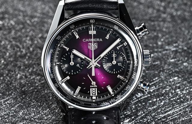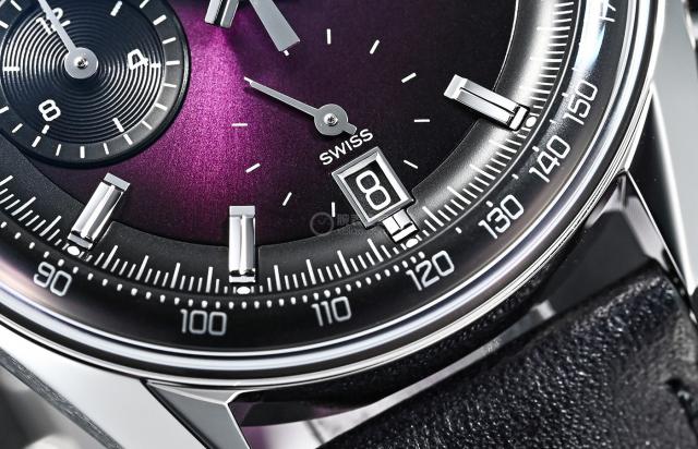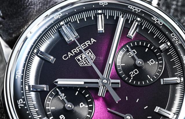 [ 手表之家手表评价 ] 第一缕晨曦般的紫晕在东方长空泛起,” 紫气东来 " 古老的预言已经给世界带来了好运。在手腕间方寸的地方,紫色不再是简单的色谱刻度,而是东方哲学的宣言,象征着吉祥和高贵,为许多有紫色时计的手表朋友增添了一份高贵典雅的美。今年的LVMH 钟表周上,TAG Heuer泰格豪雅为卡莱拉系列增添了两款全新的力作。该品牌用优雅迷人的紫色装饰复古跑车计时表,让人感受到跑车计时表的奢华风格。以下就让我们近距离欣赏这款手表:(手表型号:CBS2219.FC6607)