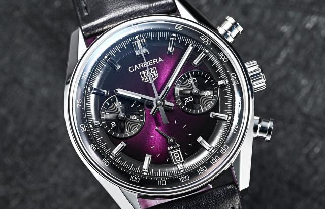 在色彩装饰方面,摩纳哥的目录可以说是相当有话语权。在摩纳哥系列紫色表盘计时码表取得巨大成功后,泰格豪雅今年在卡莱拉系列表上装饰了这种华丽、神秘、独特的色彩,并在新的一年里重磅出击。我期待着 2025 年紫气东来!