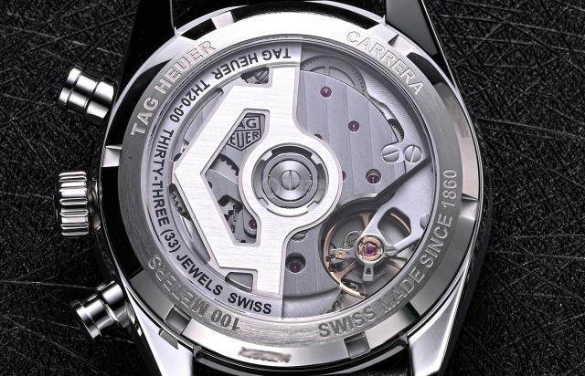 全新的泰格豪雅卡莱拉系列计时码表内部配备了自制品牌。 Heuer-02 ( TH20-00 ) 机芯。自 2023 年 TH20-00 运动出来后,品牌中的大部分计时码表都更新了这款运动。它的主要特点是提供双向链条,效率更高。由于其优异的可靠性和卓越的性能,可以通过手表的透明背面清晰地看到。这个运动提供的接近 80 动力储存小时。