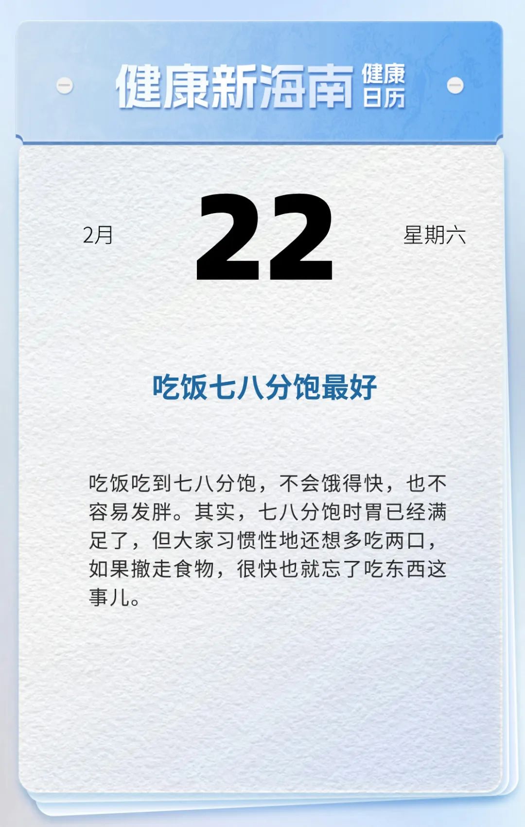 吃到七八分饱,不会饿得快,也不会轻易发胖。(来源:健康新海南)