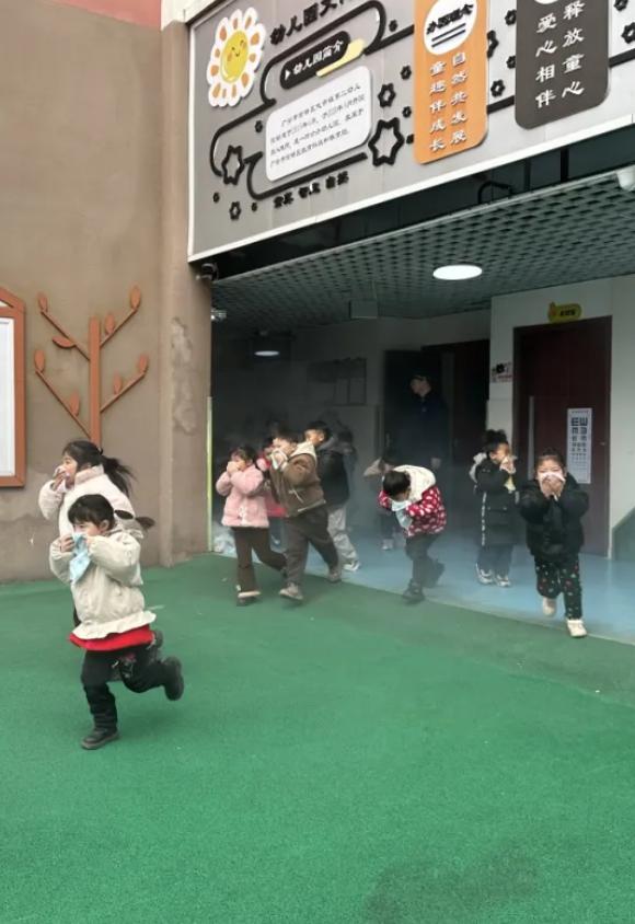⬆️广安消防救援支队消防宣传员和教师指导火灾疏散应急演练。孩子们迅速用手捂住口鼻,按照预定的疏散路线在规定时间内有序疏散到安全区域。