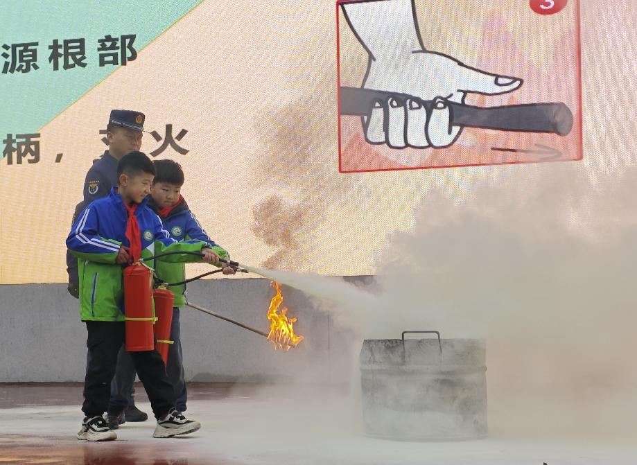 火灾初见端倪,如何在安全的情况下保证“灭病”?在“开学第一课”中,地方消防部门教孩子如何使用消防器材。