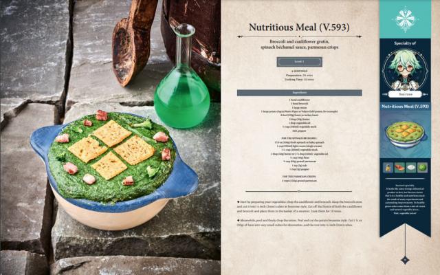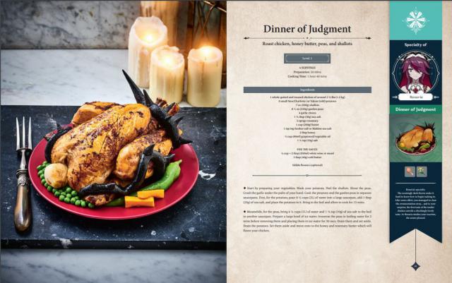 该食谱由 Thibaud Villanova 写作不仅包含了游戏中令人垂涎的美食,还邀请读者以全新的方式探索提瓦特大陆和米其林星级厨师。 Paul Pairet 和 Mory Sacko 自己写序言,为这个食谱增添了更多的亮点。