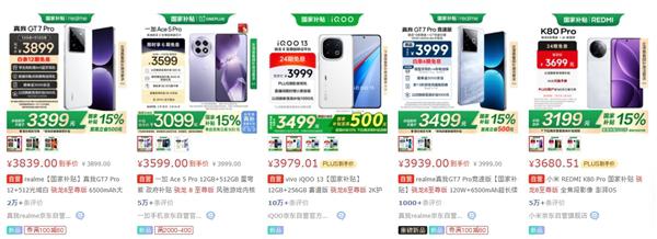 例如真我 GT7 Pro,国补后只需 2999 元起,有骁龙 8 至尊版,高刷屏,潜望长焦,6500mAh 电池、120W 快充等。
