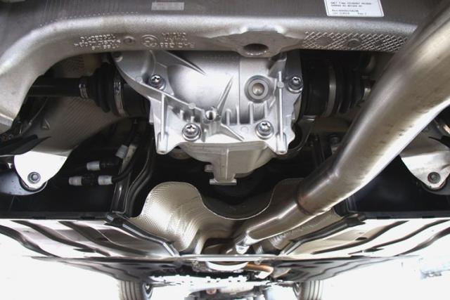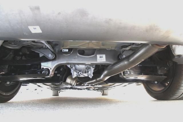由于宝马 5 该系的两轮驱动是后轮驱动,所以,从车尾看,两轮驱动和四轮驱动的结构是一样的,都有一个像马鞍一样的铝合金制成的副车架。