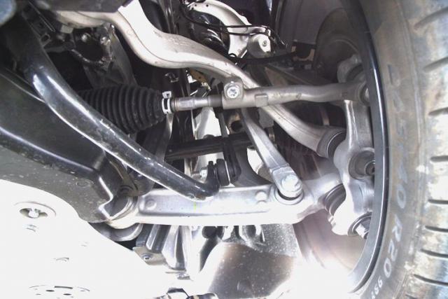 汽车悬架采用双叉臂式,零件多为铝合金材质,显然是为了减轻重量。毕竟车前有发动机和变速箱,重量比车尾大。只有尽可能减轻重量,前后桥的负荷才能更接近,从而提高操作性。