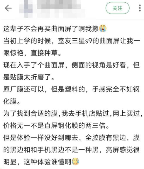 虽然曲面屏幕增强了视觉沉浸感,但边缘误触的概率仍然高于直屏,更不用说大多数消费者不是粉丝了。在曲面屏幕上翻车是很常见的。