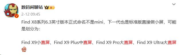 下一代 Find X9 系列,专业版,Plus、Pro 和 Ultra,还标配了整个系统的直屏。
