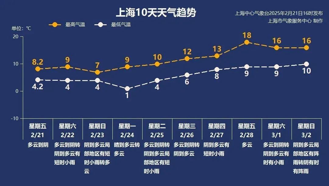 下周一上午,在晴空辐射降温的作用下,气温下降到最近的低点,只有1℃左右。然而,这种降温已经结束。从下周二开始,气温一路上升,每天都有一个小台阶。下周五最高气温可达18℃左右,颇具初春气息!