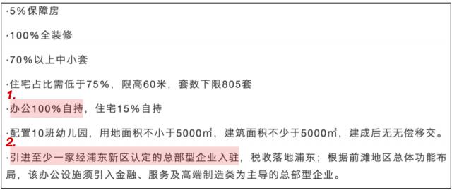 以 2020 年前滩售卖 54-01 以地块为例,在转让条件中明确表示除办公之外。 100% 自持外