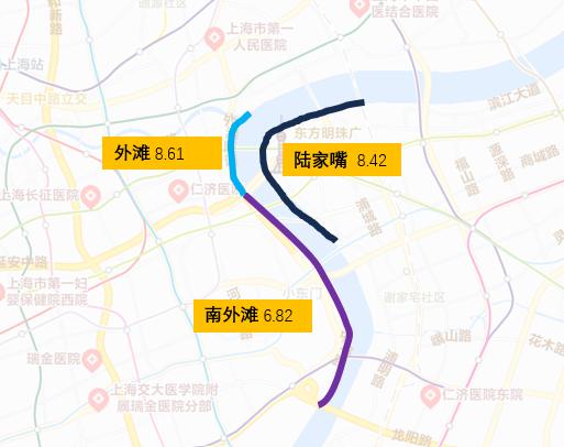 外滩和陆家嘴均价维持在外滩。 8 — 10 在元的情况下,南外滩的平均价格基本上是 7 — 9 元区间