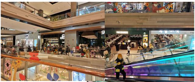 周边商场人数也很少,大部分也是来吃喝喝咖啡的,比如服装、零售等店铺基本没人光顾。