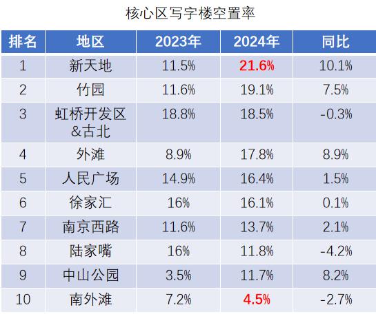 外滩空置率从 8.9% 上升到 中山公园空置率为17.8%。 3.5% 上升到 11.7%