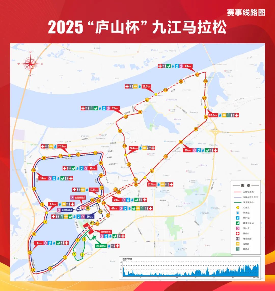 “庐山杯”九江马拉松,参赛选手将穿越长江国家文化公园(九江段),感受“浔阳江头”的优雅氛围。琵琶亭、浔阳楼、锁江楼等浔城重要历史文化遗址将被跑者一目了然。
