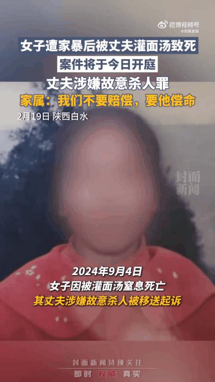 丈夫灌面汤呛死妻子的案子将开庭 受害者家属:“别赔偿,要他赔偿”:2 月 19 日本,陕西渭南,李某某灌面汤呛妻子一案,将在白水县人民法院一审审理,被告涉嫌故意杀人被起诉。受害者家属表示,李某某酒后与妻子吴女士在经营的面馆卧室发生争执,用钢尺、皮带等工具殴打吴女士,然后使用。 70 面汤灌溉,并将其拖入锅中,造成身体多处受伤。经过鉴定,受害者吴女士系面汤误吸入呼吸道,导致窒息。吴女士的家人说:“我们家不要付钱,要他还命。"