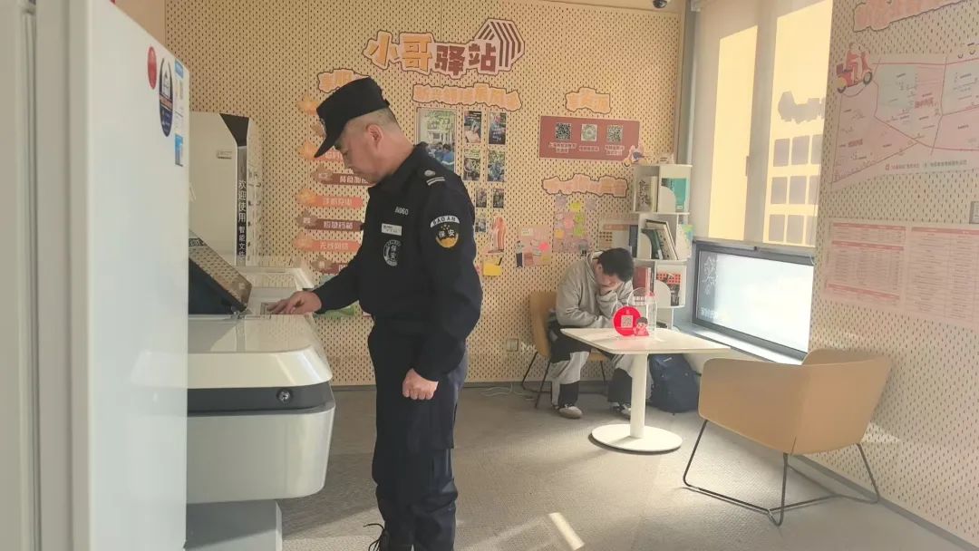 在“小哥驿站”的运维过程中,党群服务中心大门保安万师傅主动承担了空间管理员的任务。他会提示用餐人员保持环境整洁,向第一次来访者介绍服务功能,检查用电、用火等安全隐患。在他的管理下,栈里的设施井然有序,经常来的小伙伴们逐渐形成了保持环境干净整洁的默契。