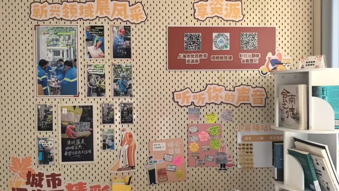 除了基本的服务设施,驿栈还设有新兴领域风格展示区和互动留言区,供新就业人士表达自己的愿望,写出困难和需求。湖南街道将定期开展街区爱心单位,认领微愿望,为其提供更多的关怀和支持。