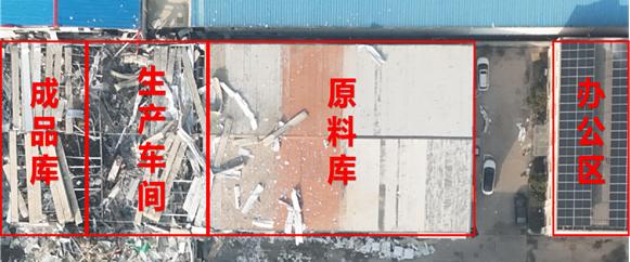2025年1月27日,由青岛市即墨区通济街道搬迁至北安街道,目前厂房面积约1100平方米,包括原料库、生产线、成品库,爆炸发生在生产线(约300平方米)。