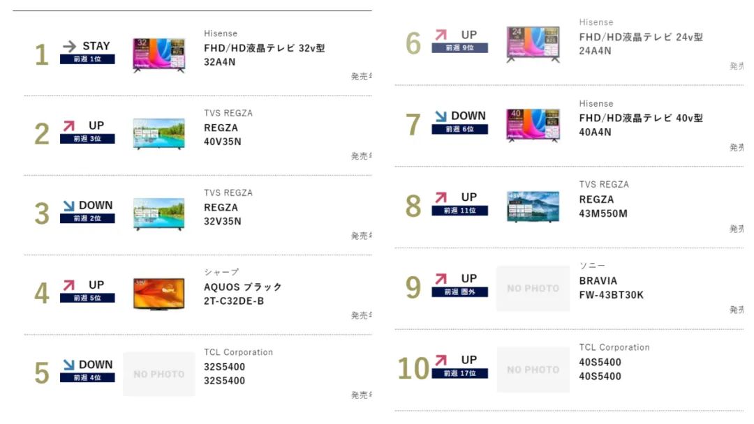 在日本商场,中国电视稳坐C位。