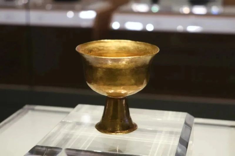 元“双万四郎”连生贵子纹高足金杯,让人想起了李白的那句“人生得意必尽欢,不让金瓶空对月”。在杯中央,有一张“连生贵子”的照片:一个孩子左手拿着荷花梗,左手高高举起扶着茎。他开心地笑着玩着,周围装满了一些荷花。整个画面看起来生动有趣,寄托着人们对生活的美好祝愿。